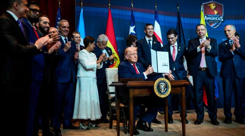 Trump se reunió con líderes latinoamericanos (incluyendo a Javier Milei de Argentina, Nayib Bukele de El Salvador y Daniel Noboa de Ecuador) el 7 de marzo pasado, en su club en Doral, para formar una alianza enfocada en combatir a los cárteles con acciones militares, describiéndolos como «narcoterroristas».