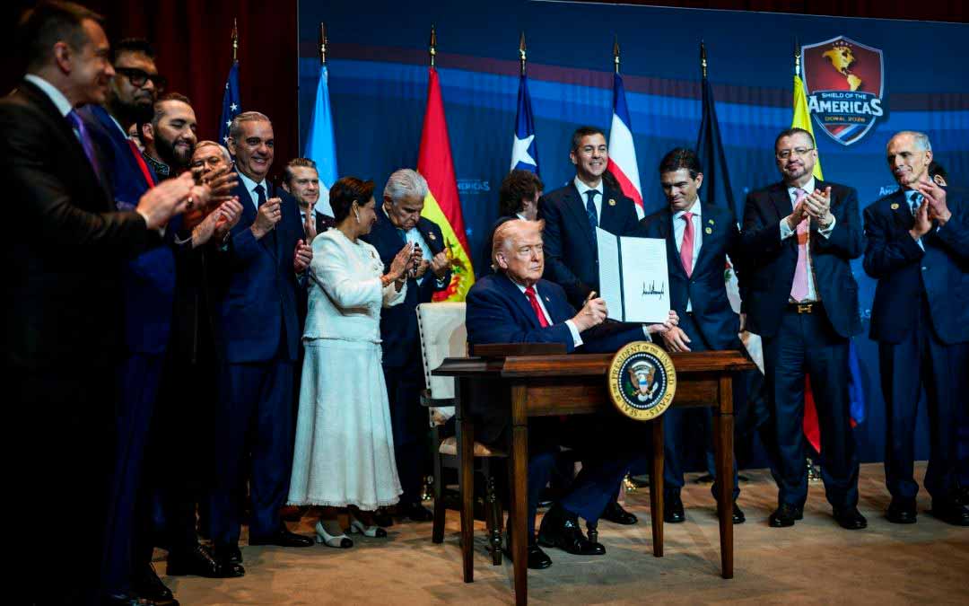 Trump se reunió con líderes latinoamericanos (incluyendo a Javier Milei de Argentina, Nayib Bukele de El Salvador y Daniel Noboa de Ecuador) el 7 de marzo pasado, en su club en Doral, para formar una alianza enfocada en combatir a los cárteles con acciones militares, describiéndolos como «narcoterroristas».