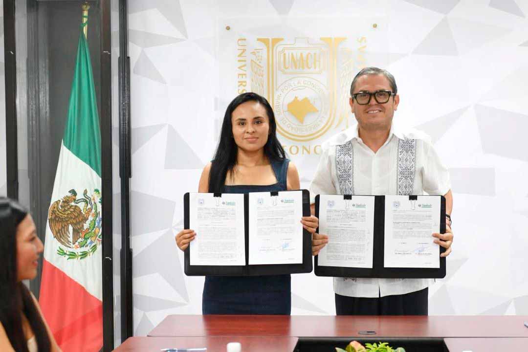 Tuxtla Gutiérrez, Chis., 11 DIC.-Con miras a la instalación de una sede académica, el rector Oswaldo Chacón Rojas y la presidenta de Tumbalá, Griselda De Jesús Méndez, firmaron un Convenio General de Colaboración y un Convenio Específico de Colaboración para la Inclusión Educativa Universitaria en la Modalidad No Escolarizada, en ese municipio.