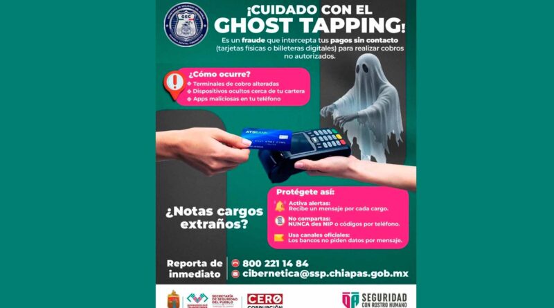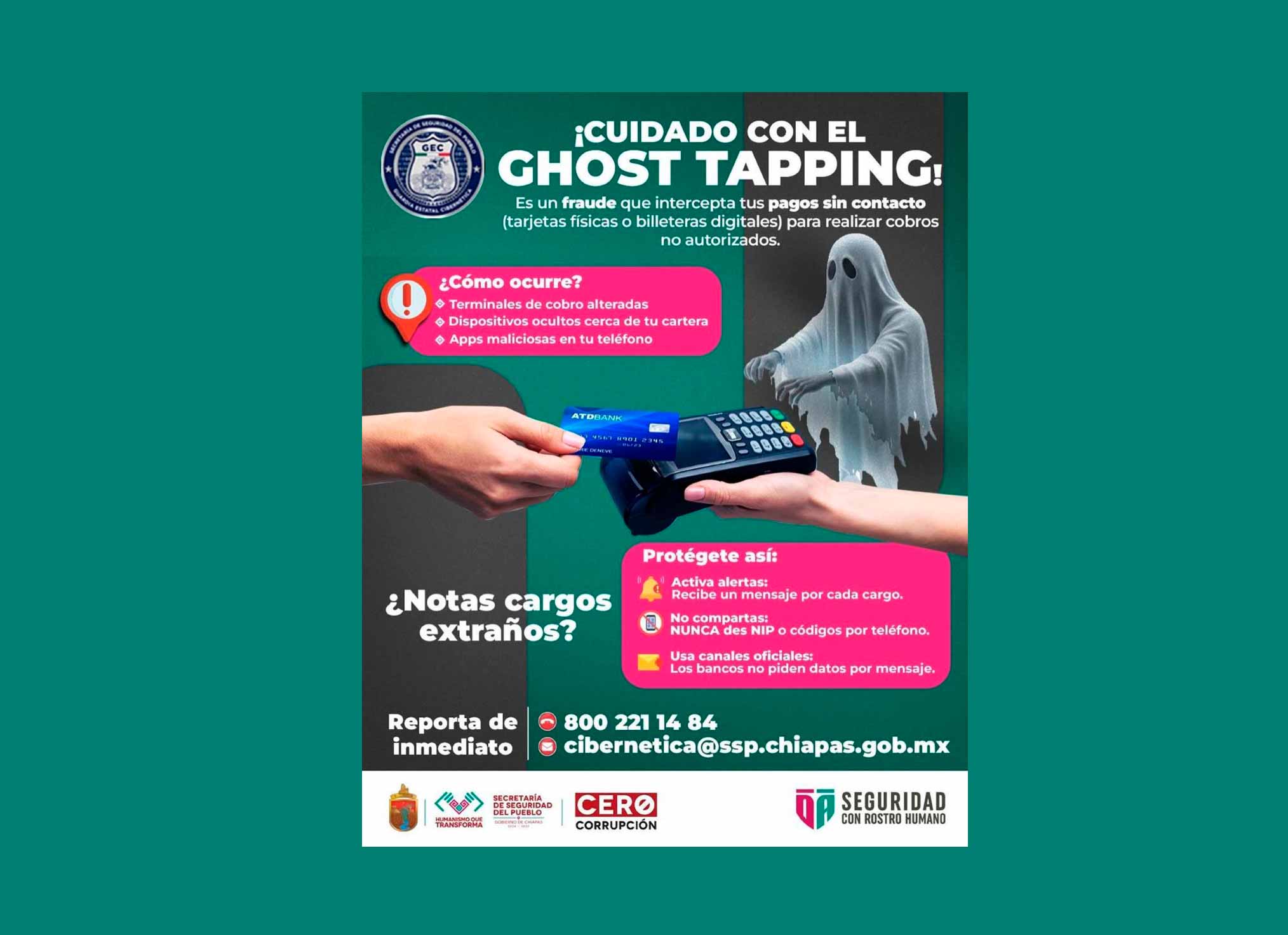 Tuxtla Gutiérrez, Chis., 15 FEB.-La Secretaría de Seguridad del Pueblo (SSP), a través de la Guardia Estatal Cibernética, alerta a la ciudadanía sobre una nueva modalidad de fraude denominado “Ghost Tapping”, que permite realizar cargos no autorizados en tarjetas bancarias.