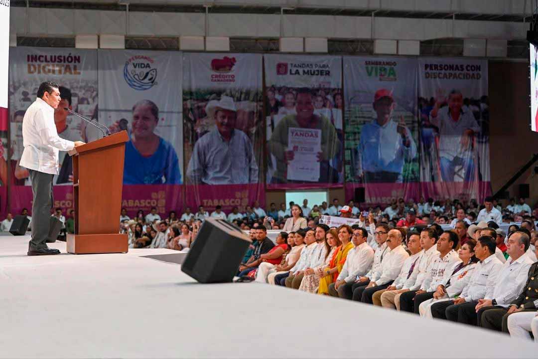 Durante su mensaje, Javier May Rodríguez expuso los principales logros alcanzados en su primer año de administración en diversos ámbitos y destacó el ambiente de coordinación que prevalece entre los gobiernos del sureste, sustentado en una visión compartida de desarrollo regional y justicia social.