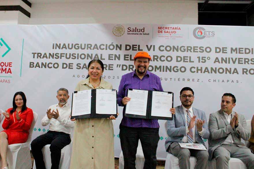En el marco de los 15 años de servicio del Banco de Sangre, el titular de la Secretaría de Salud estatal, Omar Gómez Cruz, y la secretaria general de la Benemérita Universidad Autónoma de Chiapas (Unach), María del Carmen Vázquez Velasco, en representación del rector, Oswaldo Chacón Rojas, firmaron un convenio de colaboración para la donación voluntaria y altruista.