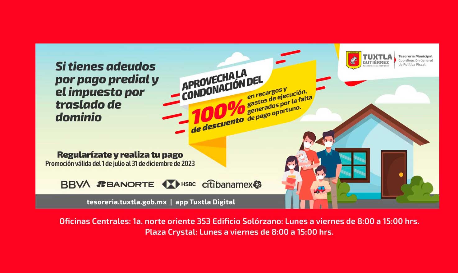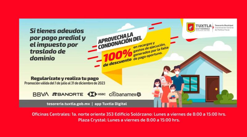 La Tesorería Municipal, ha enfatizado la accesibilidad de este descuento, ya que los contribuyentes pueden efectuar sus pagos de diversas maneras, incluyendo las oficinas centrales, la aplicación «Tuxtla Digital», el sitio web tesoreria.tuxtla.gob.mx y las sucursales de BBVA, Banorte, HSBC y City Banamex.