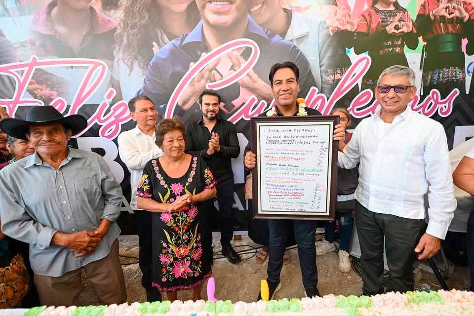 Acompañado de su esposa, Sofía Espinoza Abarca, y su hija, Yazmín Ramírez Espinoza, el mandatario recorrió ambos planteles, donde fue recibido con muestras de cariño por parte de la comunidad escolar, que también le expresó felicitaciones con motivo de su cumpleaños. En este marco, alumnas y alumnos del programa de alfabetización Chiapas Puede le entregaron un reconocimiento elaborado por ellos mismos, en el que plasmaron sus nombres y mensajes de buenos deseos.