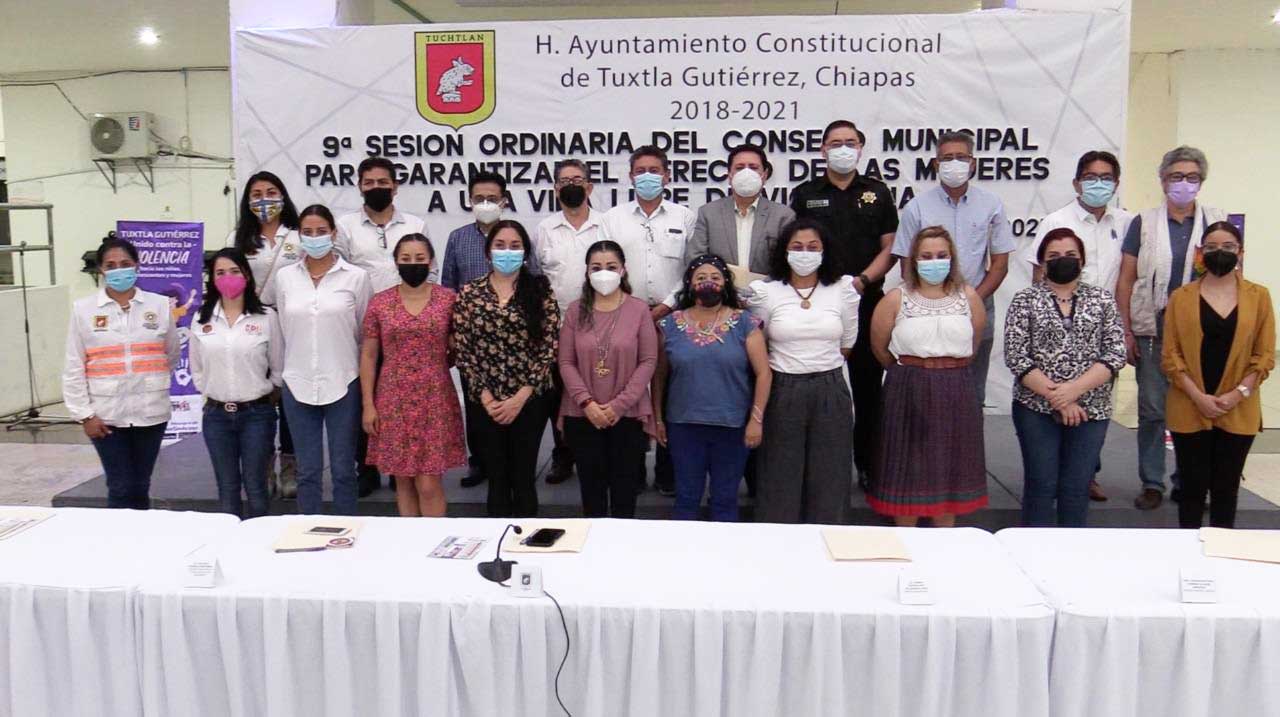 Tuxtla Gutiérrez, Chis., 26 MAR.-La presidenta Municipal, Karla Burguete Torrestiana, presidió los trabajos de la 9ª Sesión Ordinaria del Consejo Municipal para Garantizar el Derecho de las Mujeres a una Vida Libre de Violencia, en donde se destacó los avances de las 22 acciones que la Secretaría General de Gobierno, a través de la comisión de la Alerta de Género hizo llegar a los municipios que cuentan con dicha declaratoria.