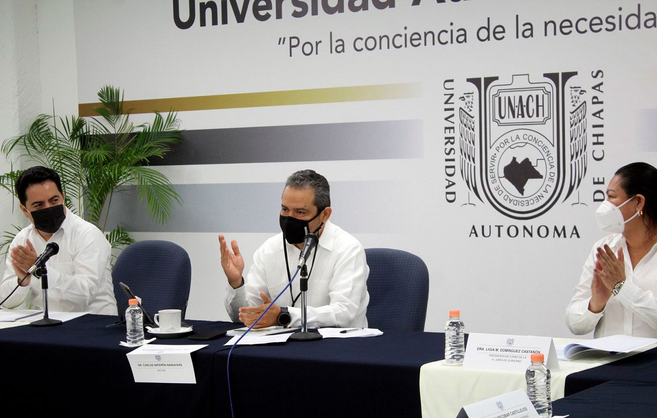 Refirió que la institución vive una coyuntura histórica, que nos invitan a trabajar de manera conjunta en acciones y tareas que den cumplimiento al compromiso que la UNACH tiene con la sociedad, de ser esa piedra angular del desarrollo del estado y del país.