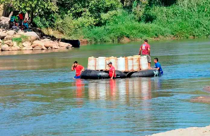 La mañana de este lunes, elementos de la XXII Zona Naval con sede en Puerto Madero, Chiapas, interceptaron en el río Suchiate una balsa con combustible que venía de Guatemala.