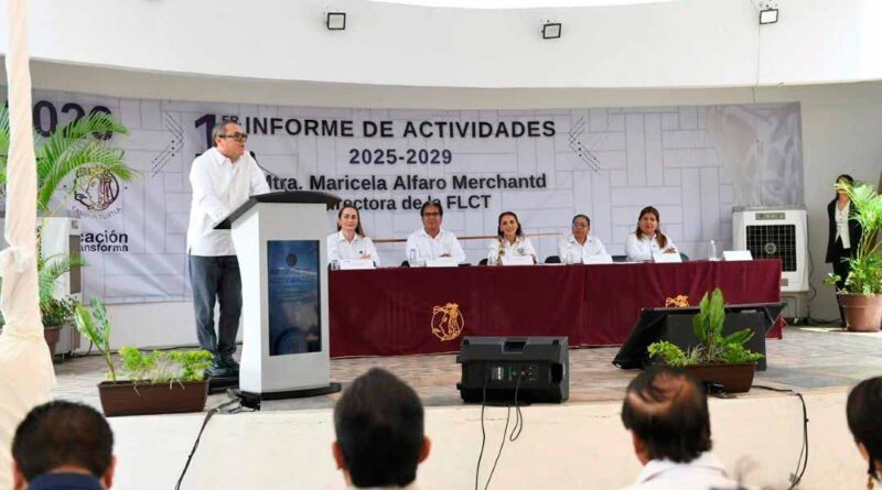 Tuxtla Gutiérrez, Chis., 25 MAR.-La directora de la Facultad de Lenguas Tuxtla, Maricela Alfaro Merchantd, rindió el Primer Informe de Actividades Académico- Administrativas, ante autoridades e integrantes de la comunidad universitaria.