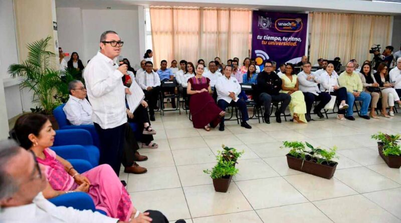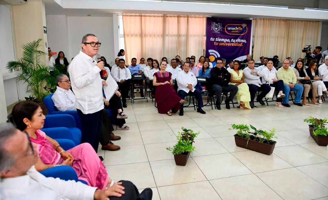 “Vivimos en una sociedad donde miles de personas, sean trabajadores, madres o padres de familia, juventudes que viven en territorios muy lejanos, sobre todo aquí en el estado de Chiapas, profesionales que buscan actualizarse, enfrentan barreras para poder hacerlo, muchos de ellos por el tema económico, la distancia geográfica y horarios incompatibles con las responsabilidades laborales o familiares, para ellos es UNACH Flex”, acotó.