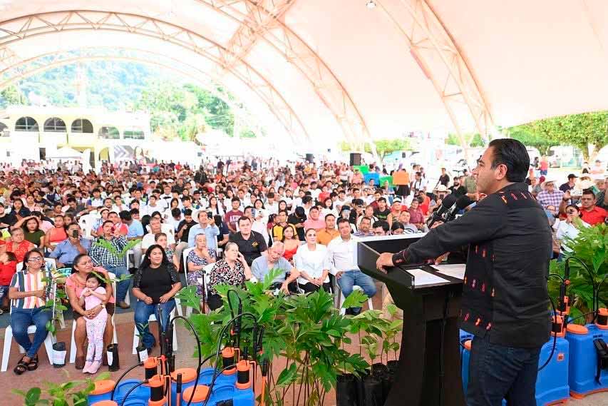 El secretario de Agricultura, Ganadería y Pesca, Marco Antonio Barba Arrocha, informó que la entrega de mil bombas aspersoras y 600 árboles frutales en Solosuchiapa e Ixtapangajoya fortalecerá la producción agropecuaria y la reforestación. Subrayó que el campo es prioridad para el gobernador y recordó que, con la Nueva ERA, las y los productores cuentan con un seguro ganadero que protege el 100 por ciento de su patrimonio ante desastres naturales. Añadió que se abrirán nuevas rutas de recolección de Liconsa, con un precio preferencial de 11.50 pesos por litro de leche, en beneficio de la región Norte.