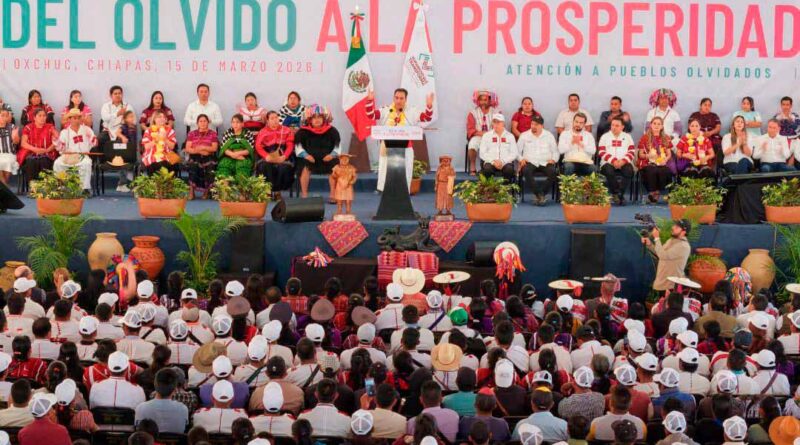 Oxchuc, Chis., 15 MAR.-El gobernador Eduardo Ramírez Aguilar encabezó la Declaratoria por la Prosperidad de los Pueblos Históricamente Olvidados, una estrategia integral mediante la cual distintas dependencias sumarán esfuerzos para atender las necesidades de 12 municipios con mayor rezago en la entidad. Este plan contempla programas y acciones en educación, salud, alimentación, medio ambiente, caminos, servicios básicos y productividad, entre otros rubros, con una inversión superior a 2 mil 694 millones de pesos prevista para el ejercicio 2026.