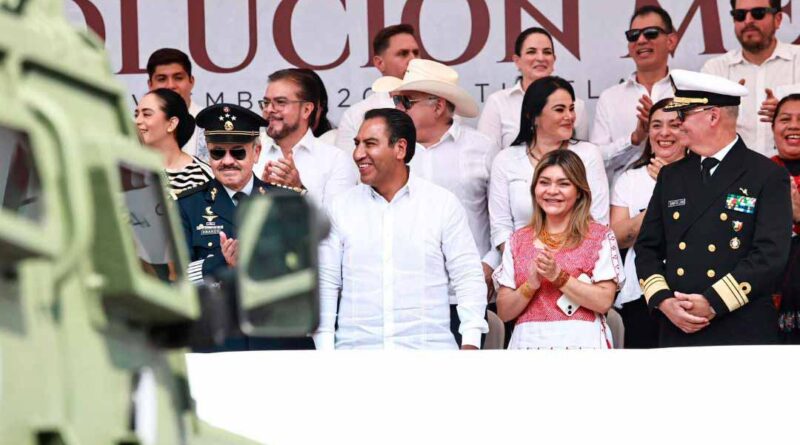 Tuxtla Gutiérrez, Chis., 20 NOV.-Acompañado de cientos de familias chiapanecas que se reunieron a lo largo de la Avenida Central de Tuxtla Gutiérrez, el gobernador Eduardo Ramírez Aguilar presenció el Desfile Cívico Militar con motivo del 115 Aniversario de la Revolución Mexicana, una conmemoración que reafirma la identidad nacional y el respeto por la historia, así como los ideales de justicia y libertad que evocan el legado de las heroínas y los héroes de esta gesta.