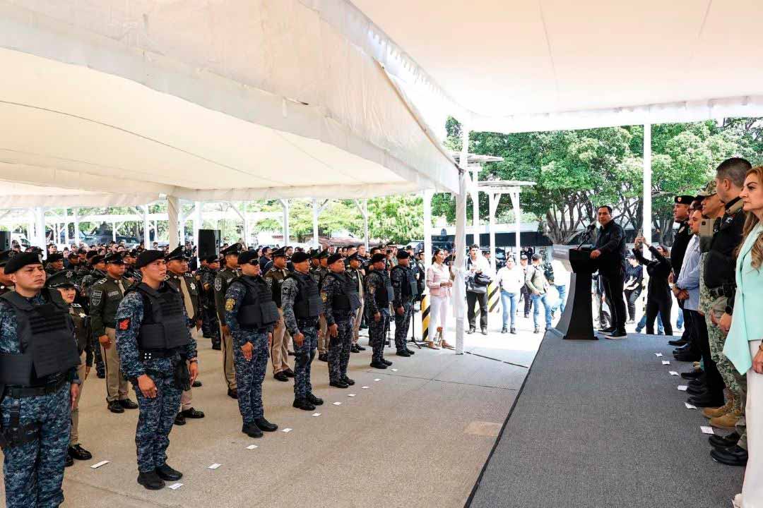 Eduardo Ramírez entrega cámaras corporales y chalecos con placas balísticas a elementos de la SSP