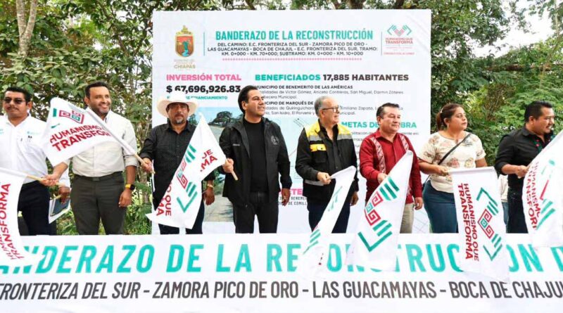 El director general de la Comisión Estatal de Caminos, Rafael Ruiz Morales, informó que tanto la reconstrucción del camino E.C. Fronteriza del Sur–Zamora Pico de Oro–Las Guacamayas–Boca de Chajul–E.C. Fronteriza del Sur como la construcción del puente vehicular El Oaxaco responden a una demanda histórica y contribuyen de manera directa al bienestar de la población de distintas localidades de Benemérito de las Américas y Marqués de Comillas.