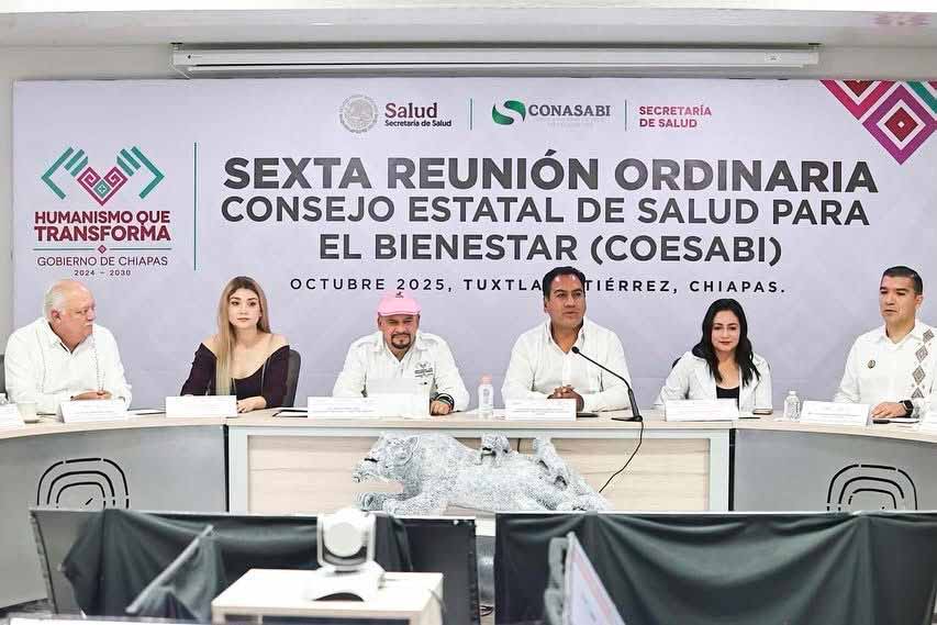 Tuxtla Gutiérrez, Chis., 24 OCT.-El gobernador Eduardo Ramírez Aguilar participó en la Sexta Reunión Ordinaria del Consejo Estatal de Salud para el Bienestar (Coesabi), donde destacó que el gobierno de la Nueva ERA trabaja en plena sintonía con las políticas impulsadas por la presidenta de la República, Claudia Sheinbaum Pardo, con el propósito de fortalecer la infraestructura hospitalaria y acercar los servicios médicos a toda la población, especialmente a los sectores más vulnerables.
