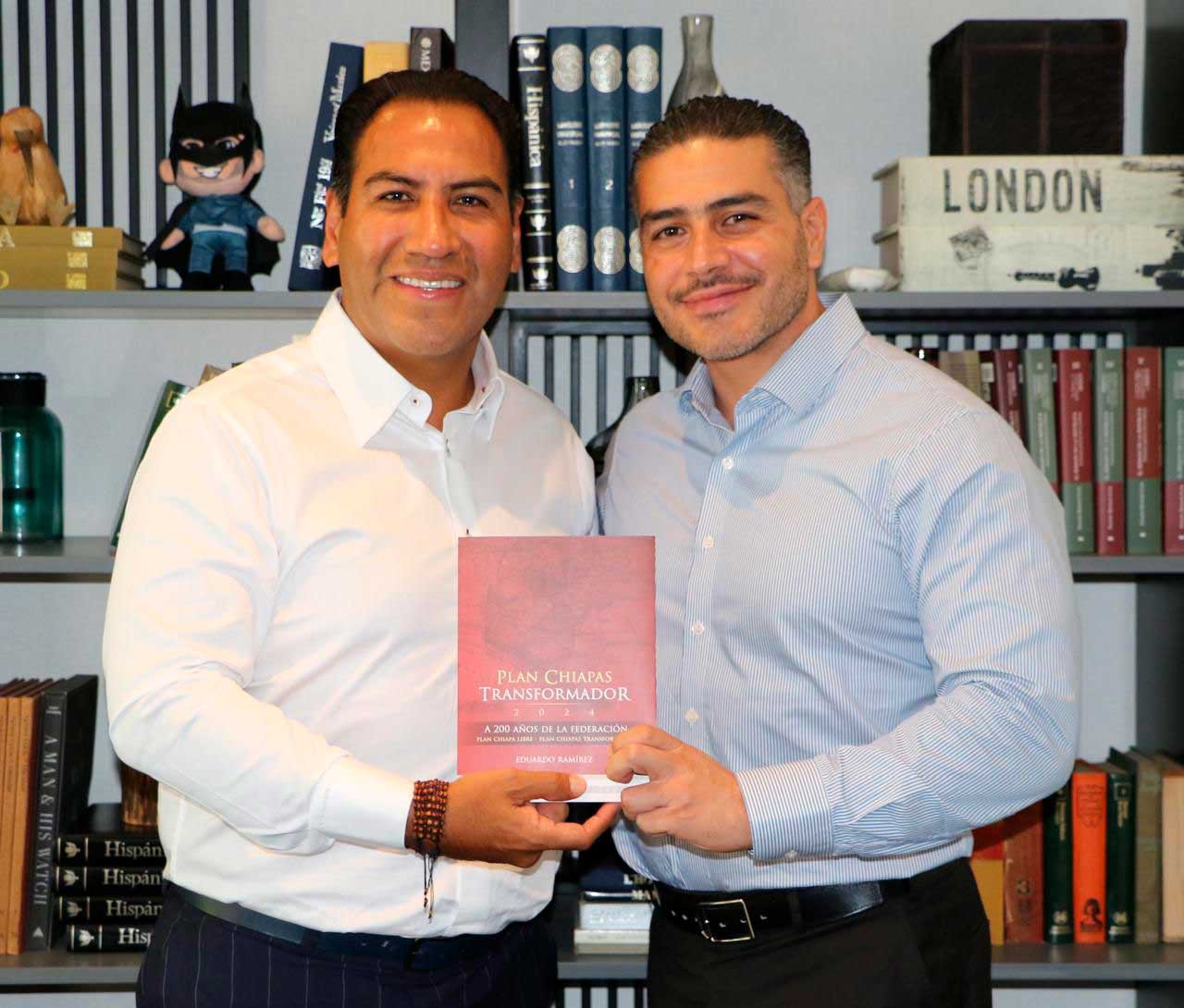 Tras entregarle una copia de su libro “Plan Chiapas Transformador, 2024” al próximo secretario de Seguridad y Protección Ciudadana, el gobernador electo resaltó que todas estas acciones serán impulsadas a través del trabajo conjunto del próximo gobierno estatal y federal para lograr que las familias de Chiapas puedan recorrer las calles y carreteras con confianza y vivan con tranquilidad en sus hogares.