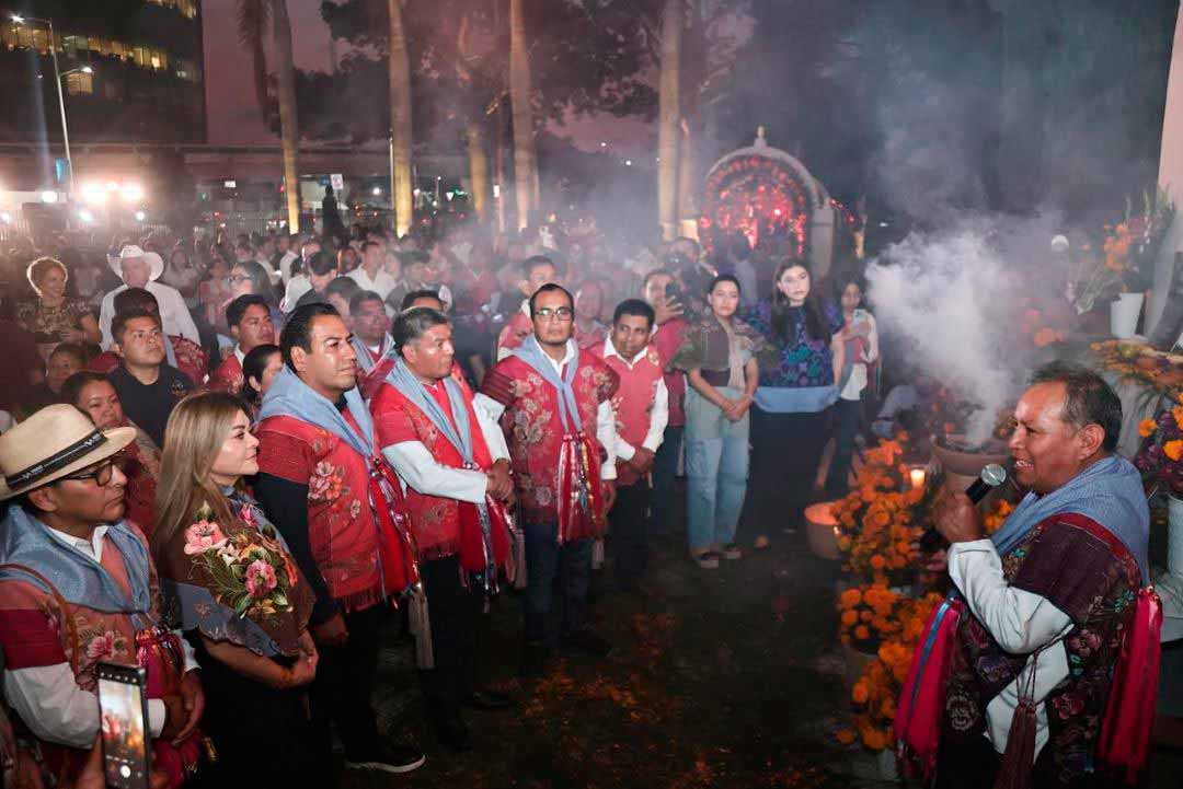 Destacó que el altar, adornado con juncia, flores, alimentos y bebidas para los difuntos, representa un símbolo vivo de la identidad y espiritualidad de las y los chiapanecos, reafirmando la importancia de transmitir estas costumbres a las nuevas generaciones. “Cada flor, cada vela y cada ofrenda colocada en este altar nos recuerda la grandeza de nuestras tradiciones y el respeto hacia quienes nos antecedieron”, expresó.