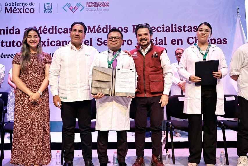 A su vez, el subsecretario de Integración Sectorial y Coordinación de Servicios de Atención Médica, Eduardo Clark García Dobarganes, reconoció la decisión de más de 300 médicos especialistas quienes, tras concluir su formación, eligieron “una causa justa y noble” al incorporarse al IMSS Chiapas y al sector público.