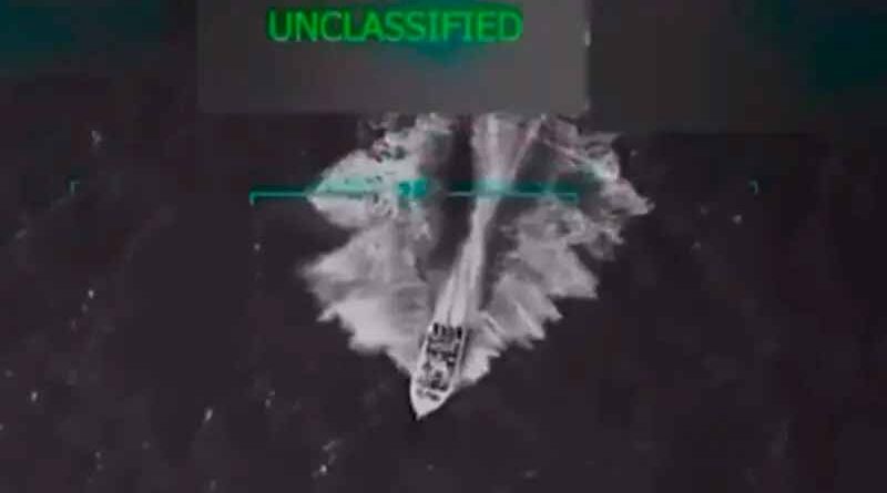 Luego compartió un video en el que se ve a una pequeña embarcación que avanza por el mar antes de recibir disparos de una aeronave.