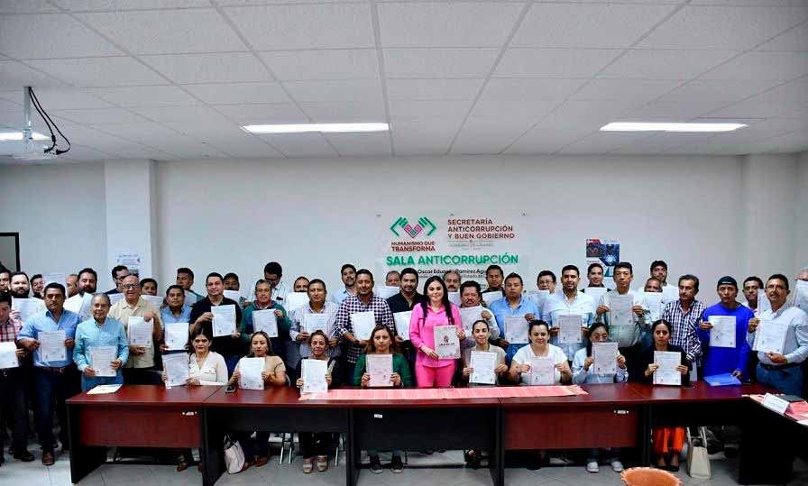 Tuxtla Gutiérrez, Chis., 14 OCT.-Con el propósito de fortalecer la transparencia, la rendición de cuentas y la legalidad en la obra pública, la Secretaría Anticorrupción y Buen Gobierno (SAyBG) llevó a cabo la entrega de 60 Constancias de Registro Único de Contratista-CRUC BALAM, a empresas chiapanecas que acreditaron el cumplimiento de los requisitos legales y administrativos que las facultan para participar en procesos de licitación y ejecución de proyectos de infraestructura.