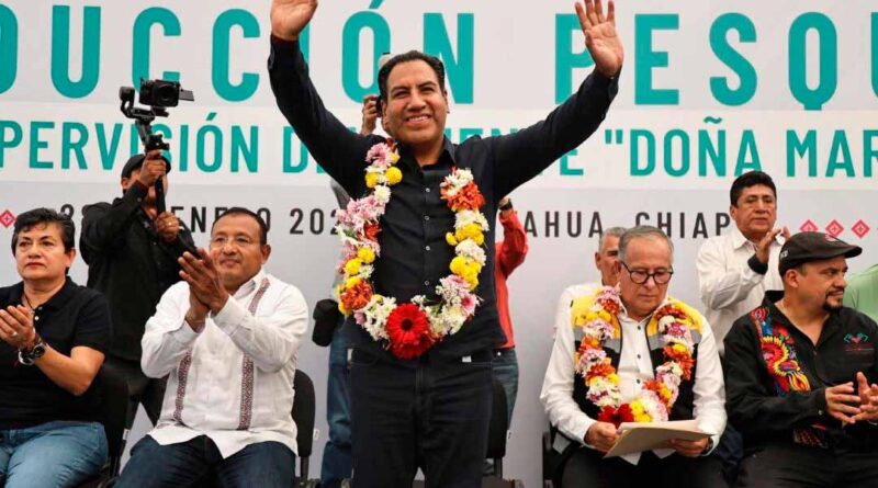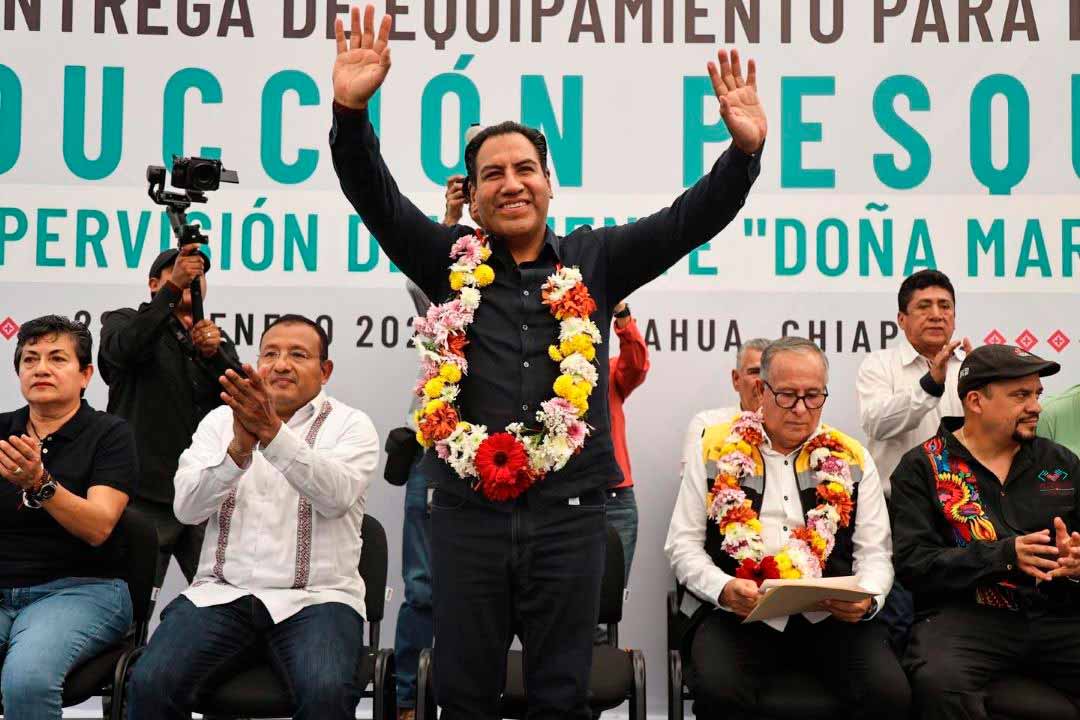 Acapetahua, Chis., 28 ENE.-El gobernador Eduardo Ramírez Aguilar destacó que el gobierno de la Nueva ERA impulsa acciones y proyectos con el objetivo de fortalecer la productividad y el desarrollo sustentable en los nueve municipios pesqueros de Chiapas. Remarcó que además de duplicar los apoyos económicos y entregar herramientas a las y los pescadores, se impulsa una inversión importante en maquinaria especializada para mejorar de forma integral los sistemas lagunarios.