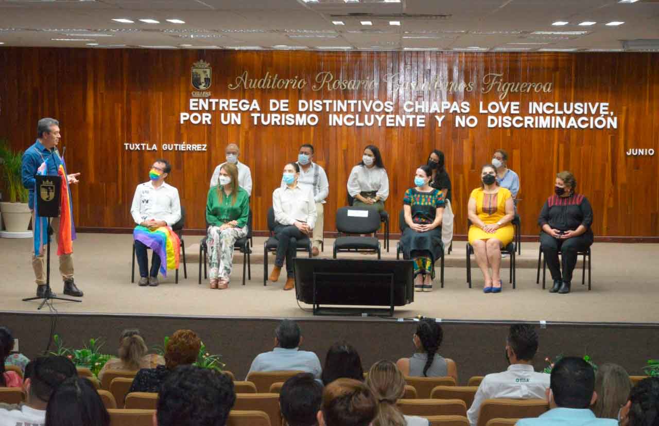 Lo anterior al participar en el evento -organizado de manera conjunta por la secretaria de Turismo Katyna De la Vega Grajales y por María Mandiola Totoricaguena, secretaria de igualdad de género-, denominado: “Entrega de distintivos Chiapas Love Inclusive, por un turismo incluyente y no discriminación”.
