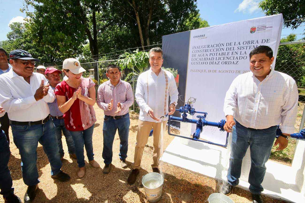 En Palenque, Rutilio Escandón inauguró el Sistema de Agua Potable de la localidad Gustavo Díaz Ordaz