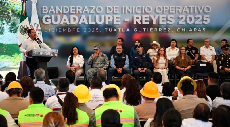 Tuxtla Gutiérrez, Chis., 01 DIC.-En el gobernador Eduardo Ramírez Aguilar dio el banderazo de inicio del Operativo Guadalupe-Reyes 2025. Señaló que el propósito es reforzar la coordinación entre las autoridades de seguridad y procuración de justicia, las Fuerzas Armadas, el sector salud, así como las instituciones estatales y municipales, con el fin de garantizar la tranquilidad y el bienestar de la población ante el incremento de la movilidad y las celebraciones decembrinas.