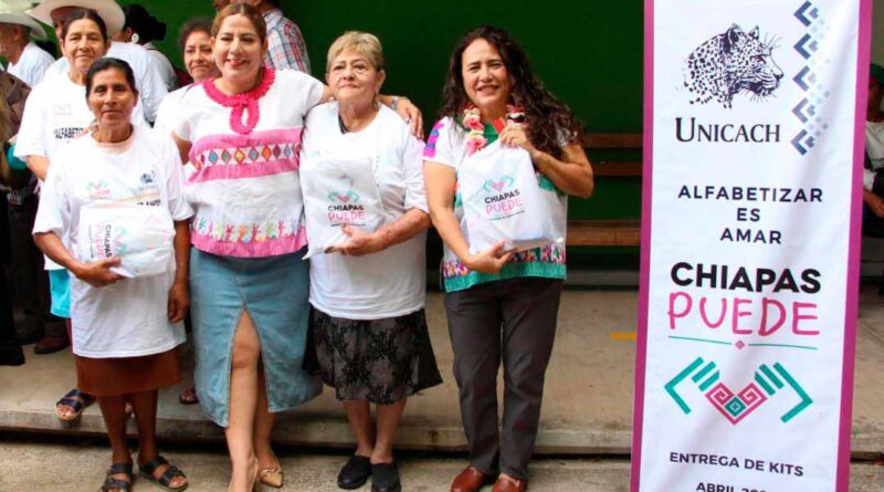 Encabeza rectora de UNICACH Fanny López Jiménez en Venustiano Carranza entrega de paquetes para alfabetización del programa Chiapas Puede
