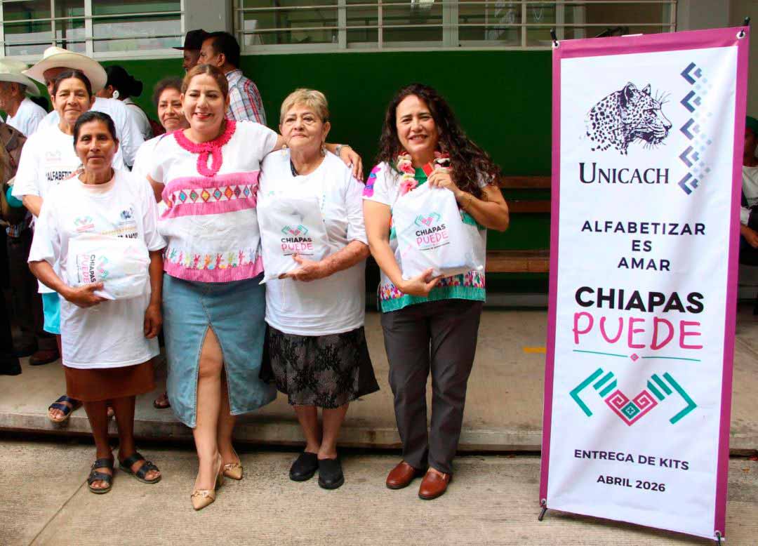 Tuxtla Gutiérrez, Chis., 20 ABR.-La rectora de la Universidad Autónoma de Ciencias y Artes de Chiapas (UNICACH), Fanny López Jiménez, encabezó la entrega de paquetes educativos a 305 educandos del programa “Chiapas Puede” en la sede universitaria de Venustiano Carranza, donde resaltó el compromiso de la institución con la alfabetización y el desarrollo social de la entidad.