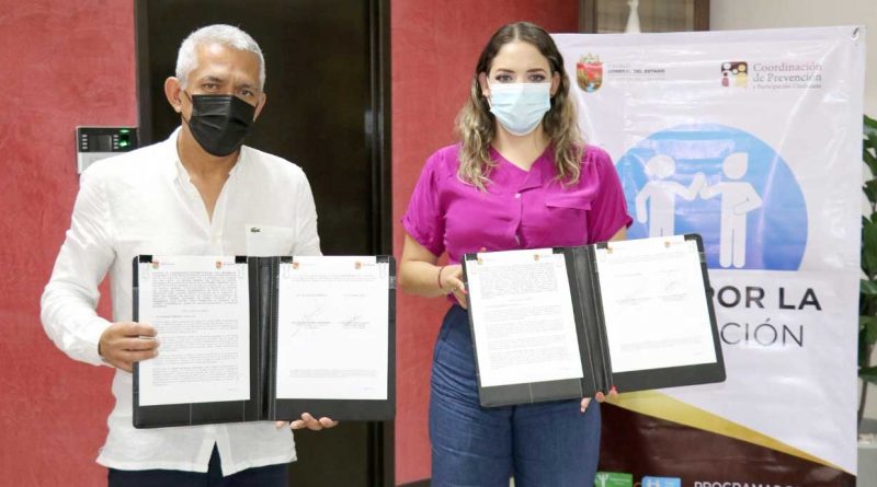 Tuxtla Gutiérrez, Chis., 30 MAR.-Con el objetivo coordinar acciones conjuntas para impulsar la participación ciudadana y la prevención entre la población chiapaneca, el titular de la Fiscalía General del Estado (FGE), Olaf Gómez Hernández y la directora del Instituto del Deporte del Estado (Indeporte), Tania Valeria Robles Velázquez, signaron un convenio de colaboración.