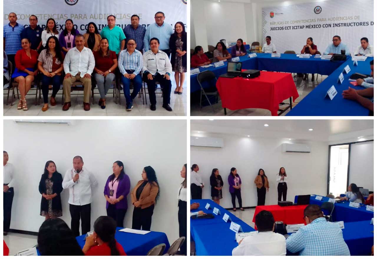 Tuxtla Gutiérrez, Chis., 26 JUN.-La Fiscalía General del Estado (FGE) a través de la Dirección de Profesionalización dio inicio al primer curso de Réplicas para Competencias de Audiencias de Juicios del Programa de Capacitación Internacional para la Investigación Criminal ICITAP (por sus siglas en inglés), de la Embajada de los Estados Unidos de Norteamérica.