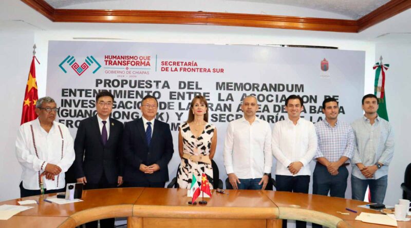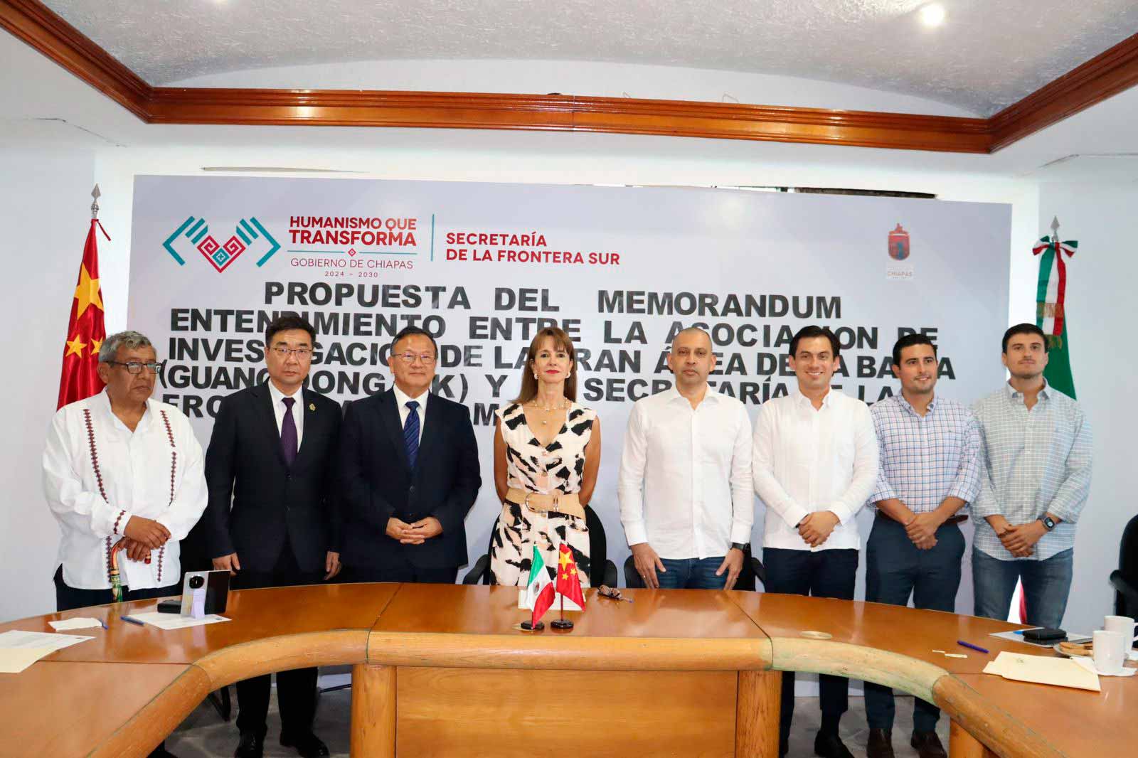 Tapachula, Chis., 19 MAR.-La Secretaría de la Frontera Sur, encabezada por María Amalia Toriello Elorza, con la participación del subsecretario de Seguimiento y Desarrollo Socioeconómico, Carlos Andrés Siles Torres, sostuvo un encuentro de trabajo con integrantes de la Asociación de Investigación de la Gran Área de la Bahía (Guang Dong-HK), encabezados por el vicepresidente de Desarrollo Económico y Tecnológico de The Greater Bay Area, Allen Cheng, y el presidente de Inno Drug Group Yin Yunlu, con el propósito de generar un primer acercamiento que permita identificar áreas de oportunidad para la cooperación económica y el desarrollo regional.