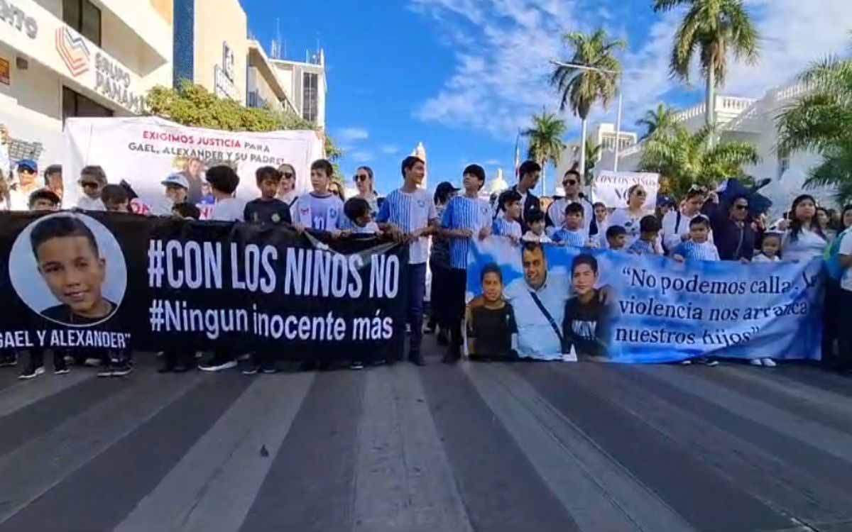 En los escritos en cartulinas se podía leer mensajes como: “Ningún inocente más”, “Exigimos justicia para Gael, Alexander y su padre”.