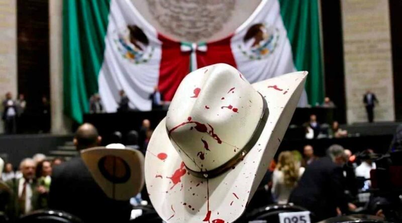 Los legisladores colocaron los sombreros «ensangrentados» sobre los micrófonos de sus curules.