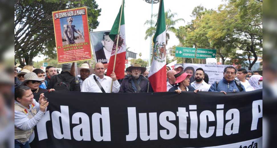 Las víctimas de desaparecidos portan las imágenes de familiares desaparecidos o asesinados y corearon el viejo estribillo de “vivos se los llevaron, vivos los queremos”.