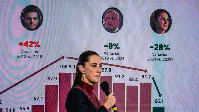 Según esos datos, México ha registrado desde octubre de 2024 una disminución de los homicidios de 37% y de 46% en los delitos “de alto impacto”.