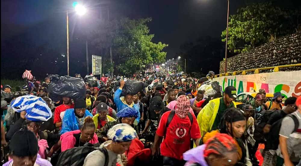 Este éxodo masivo está integrado en su mayoría por personas originarias de Haití, quienes representan entre el 70 y 80 por ciento del contingente, y que salieron portando impermeables para protegerse de la lluvia.