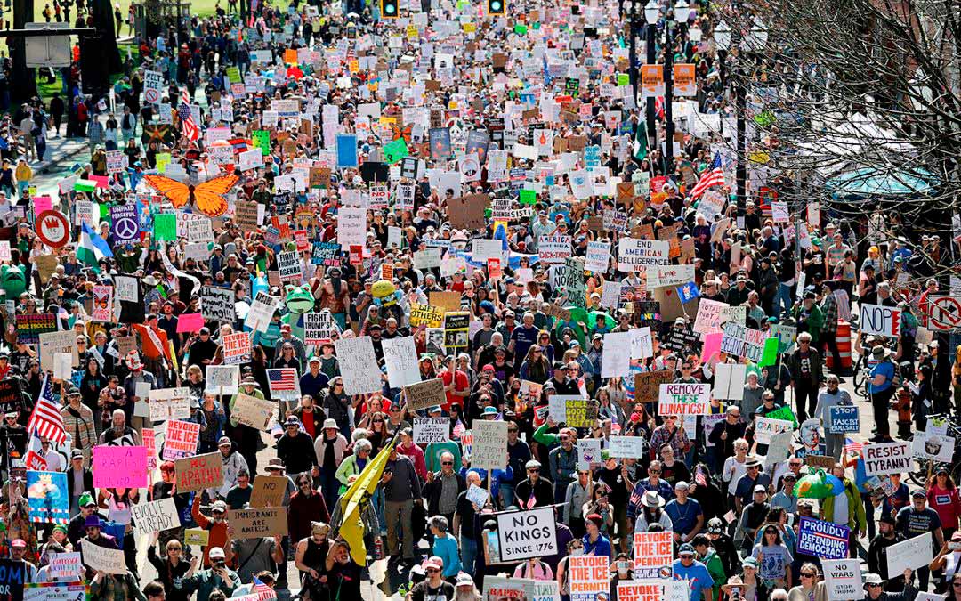 El movimiento, que engloba decenas de organizaciones y activistas demócratas, convocó más de 3.300 protestas en los 50 estado de EU para repudiar lo que llama “autoritarismo” de Trump.