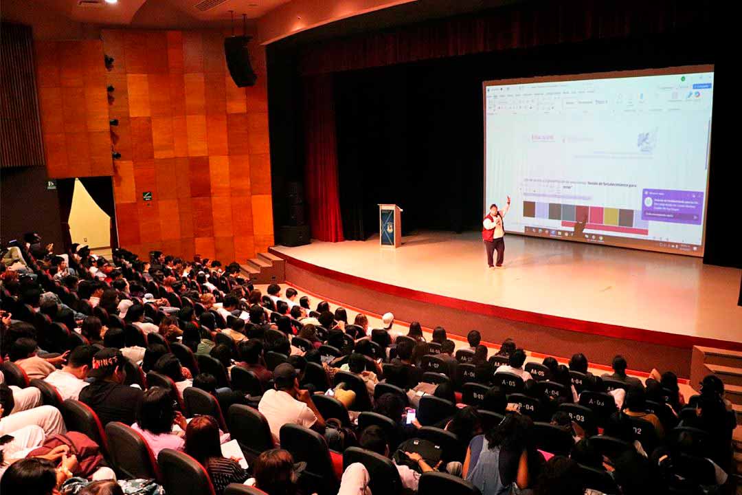 Durante la sesión informativa, realizada en el Teatro Universitario, enfatizó la necesidad de contar con la CURP validada por el Registro Civil para completar el registro, así como leer detenidamente las indicaciones que proporciona la plataforma para realizar el trámite con éxito.
