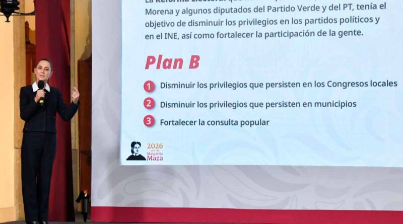 Ciudad de México, 12 MAR.-Luego del rechazo en la Cámara de Diputados a la Reforma Electoral impulsada por el gobierno federal, la presidenta Claudia Sheinbaum anunció que enviará un “Plan B” legislativo el próximo lunes con el objetivo de continuar con la reducción de privilegios en el sistema político y ampliar los mecanismos de participación ciudadana.