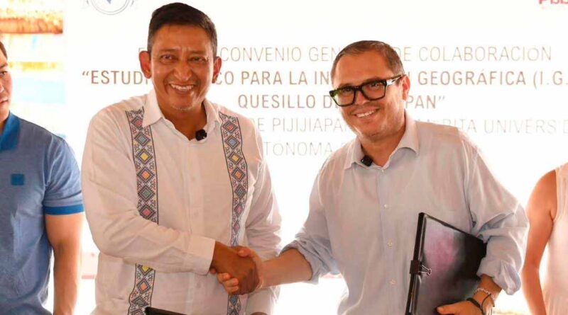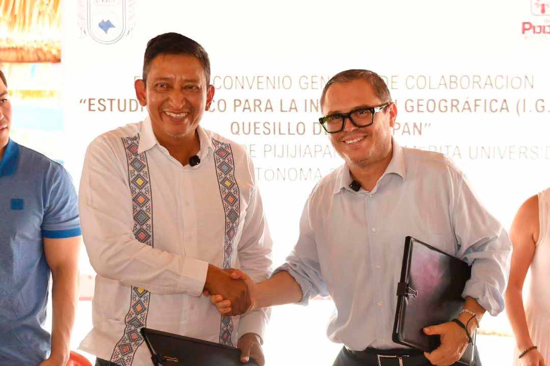 Pijijiapan, Chis., 01 SEP.-Con el objetivo de generar el Estudio Técnico para la Indicación Geográfica (I.G.) del Quesillo de Pijijiapan, el rector de la Universidad Autónoma de Chiapas, Oswaldo Chacón Rojas y el presidente de este municipio, Carlos Alberto Albores Lima, firmaron un Convenio General de Colaboración.