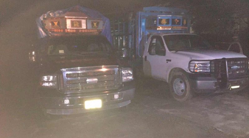 Como parte de las labores que se realizan en apoyo al Instituto Nacional de Migración (INM) y para prevenir cualquier expresión delictiva que ponga en riesgo la integridad de la ciudadanía, elementos de seguridad pública destacamentados en un puesto de inspección vehicular sobre el tramo carretero que conduce del municipio de Reforma a Juárez, detectaron el exceso de velocidad en el que eran conducidas dos unidades tipo tres tonelada marca Ford F350 de color rojo y placas de circulación P53FXK del estado de México y marca Ford de redilas color blanco con azul y placas de circulación CP90884.