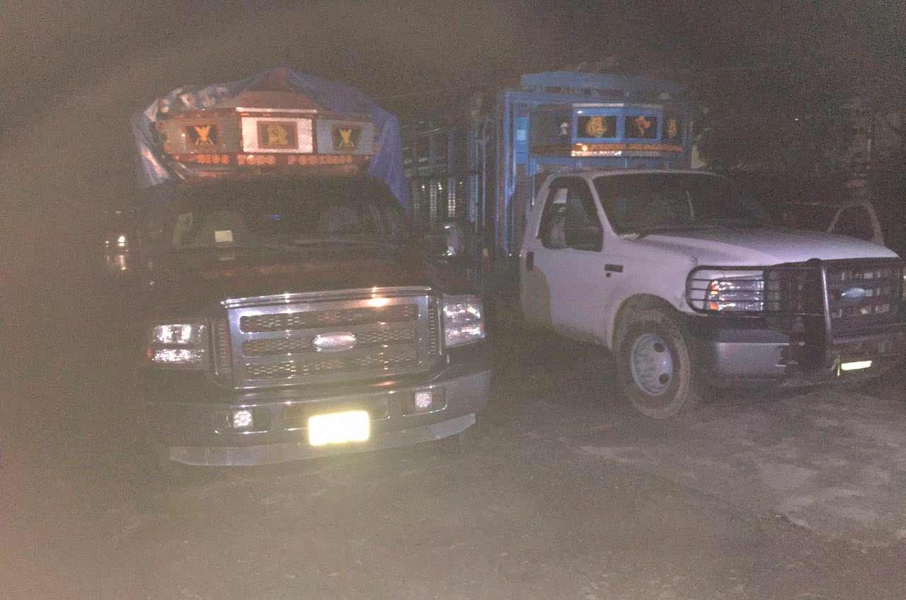 Como parte de las labores que se realizan en apoyo al Instituto Nacional de Migración (INM) y para prevenir cualquier expresión delictiva que ponga en riesgo la integridad de la ciudadanía, elementos de seguridad pública destacamentados en un puesto de inspección vehicular sobre el tramo carretero que conduce del municipio de Reforma a Juárez, detectaron el exceso de velocidad en el que eran conducidas dos unidades tipo tres tonelada marca Ford F350 de color rojo y placas de circulación P53FXK del estado de México y marca Ford de redilas color blanco con azul y placas de circulación CP90884.