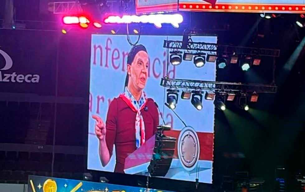 En el show se burlaron de AMLO y sus hijos, escenificando abrazos con personajes que simbolizaban narcos y le entregaban dinero.