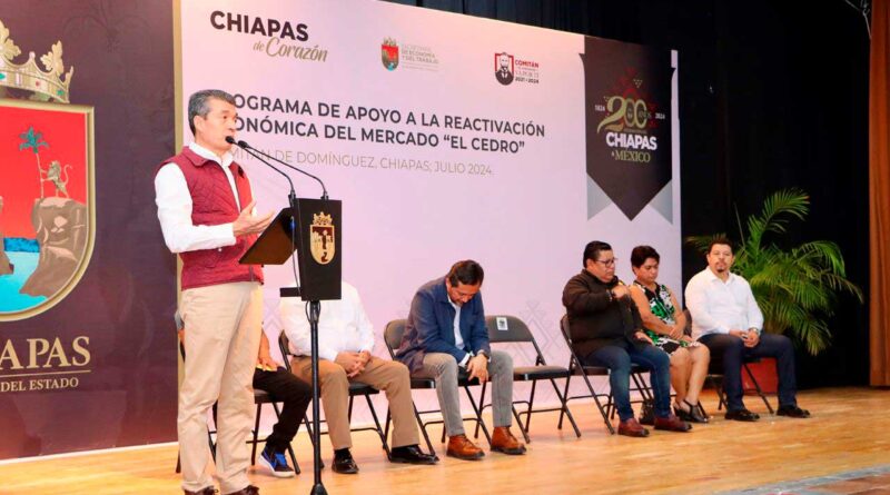 Rutilio Escandón encabeza primera entrega de subsidios a locatarios del Mercado Público “El Cedro”, en Comitán