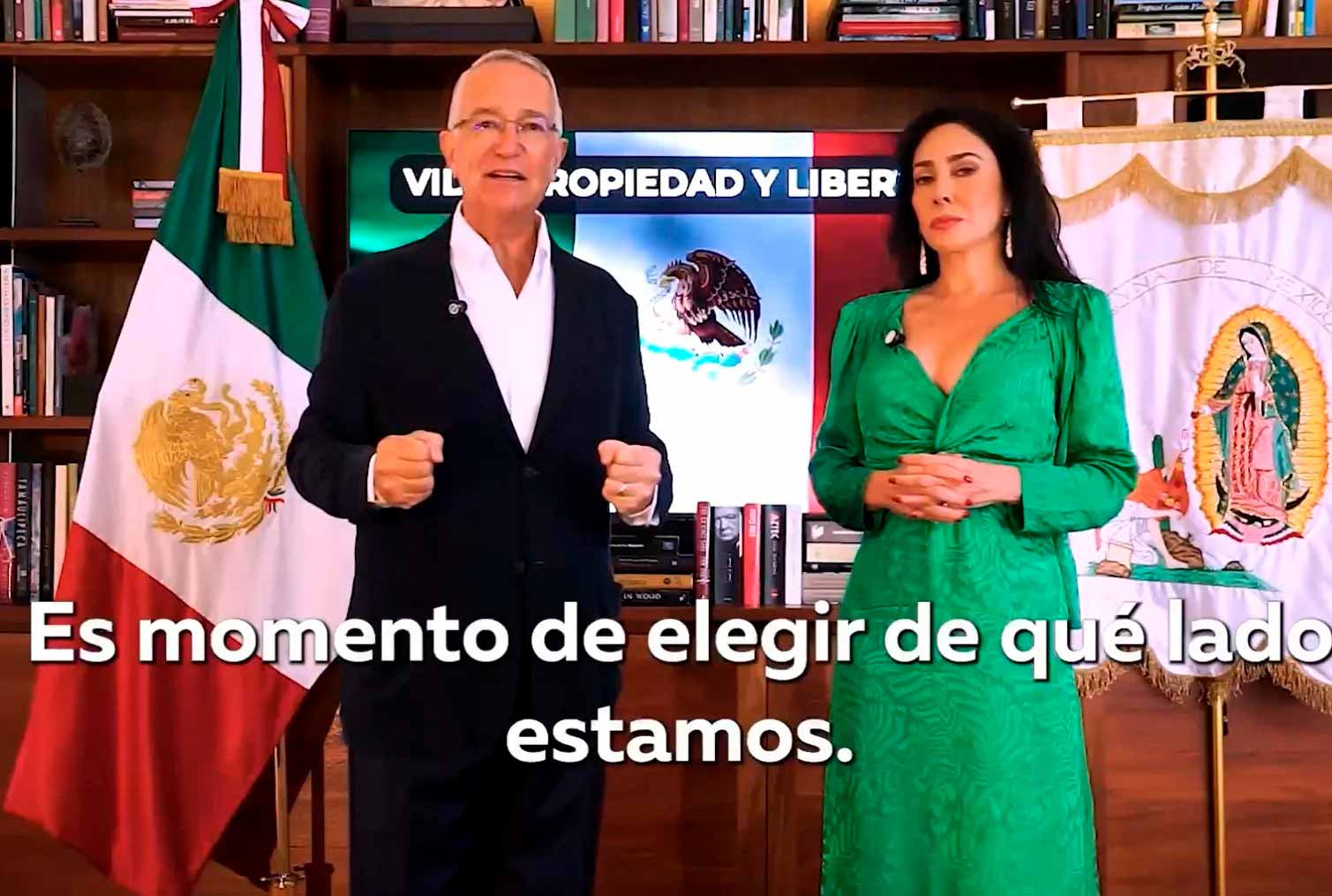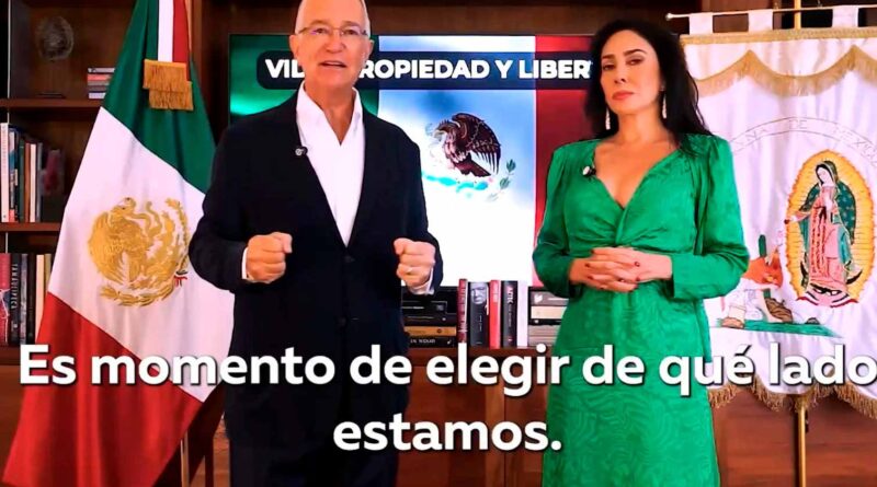 En sus redes sociales y en los canales de sus medios de comunicación se difundió el video de alrededor de cinco minutos de duración. Estuvo acompañado por su esposa, María Laura Medina y detrás de ellos colocaron la bandera nacional y un estandarte de la Virgen de Guadalupe. Arriba se leía el lema “Vida, propiedad y libertad”.