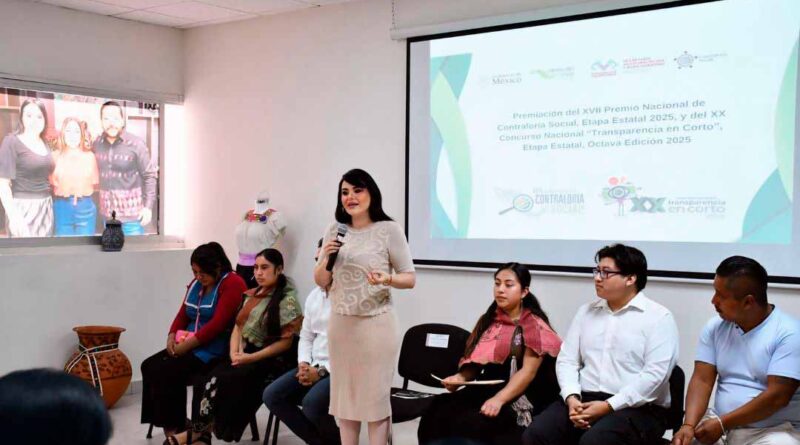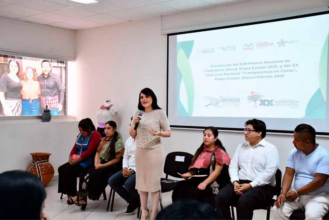 Asimismo, se reconoció a las y los galardonados del primer, segundo y tercer lugar de la primera categoría (15 a 18 años) y segunda categoría (19 a 25 años), del XX Concurso Nacional Transparencia en Corto, Etapa Estatal Octava Edición 2025.