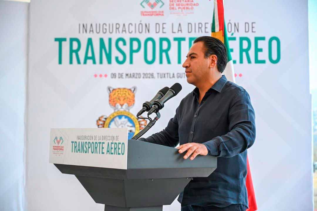 Tuxtla Gutiérrez, Chis., 09 MAR.-El gobernador Eduardo Ramírez Aguilar encabezó la inauguración de la Dirección de Transporte Aéreo de la Secretaría de Seguridad del Pueblo (SSP), un espacio operativo que contribuirá a reforzar de manera integral la seguridad en Chiapas. En este marco, destacó que con estas acciones se fortalecen las labores de vigilancia, reacción y apoyo a las estrategias de seguridad, lo que permite ampliar la capacidad institucional para proteger al pueblo chiapaneco.