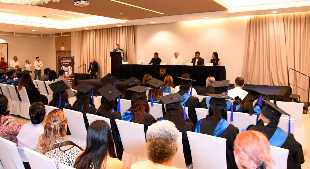 A su vez, el asesor de Rectoría UNACH, Juan Enrique Quintana Adriano, en representación del rector Oswaldo Chacón Rojas, dijo que esta ceremonia representa la constancia, la disciplina y el compromiso con el conocimiento que cada uno de los nuevos profesionales ha demostrado.